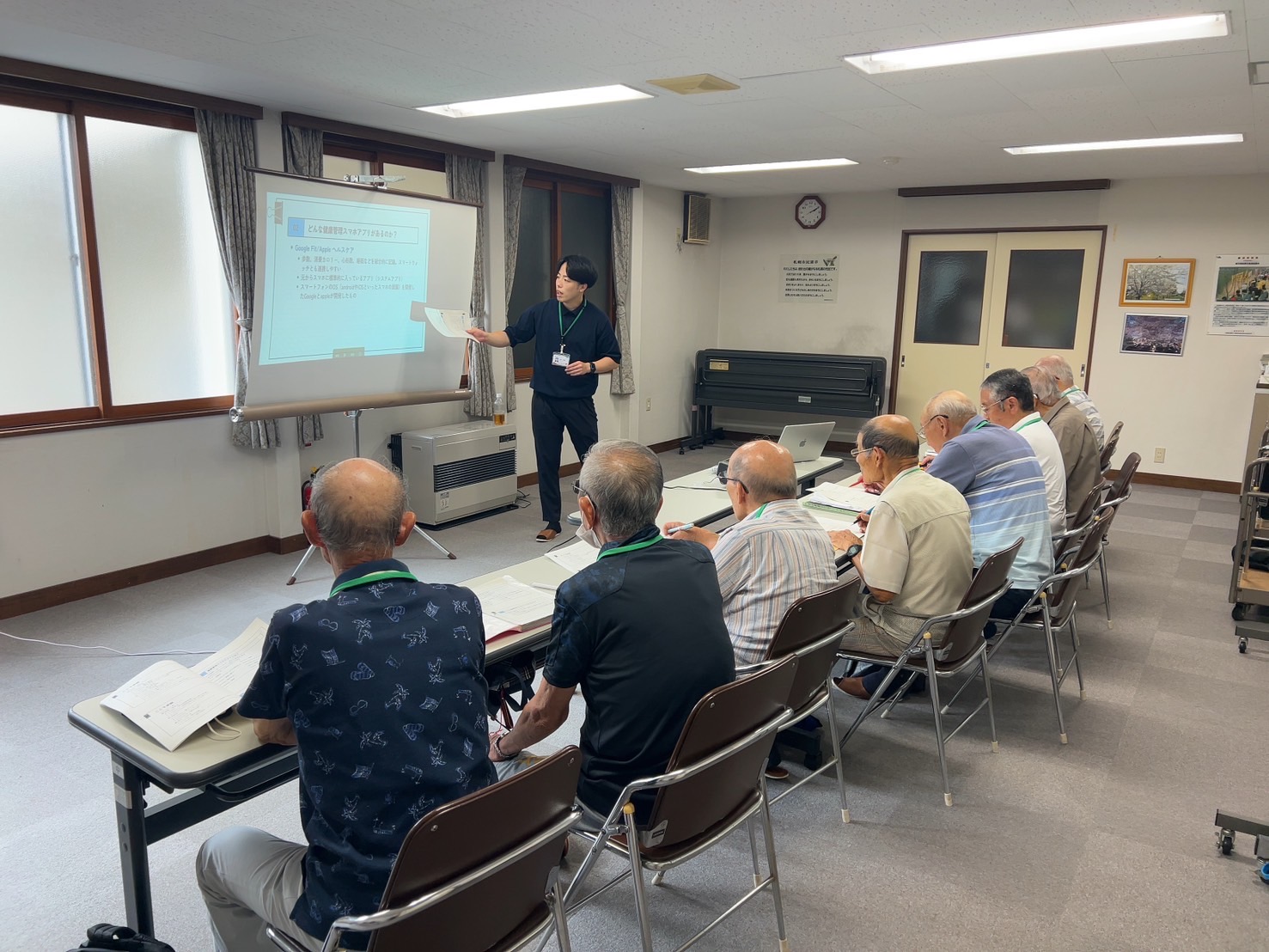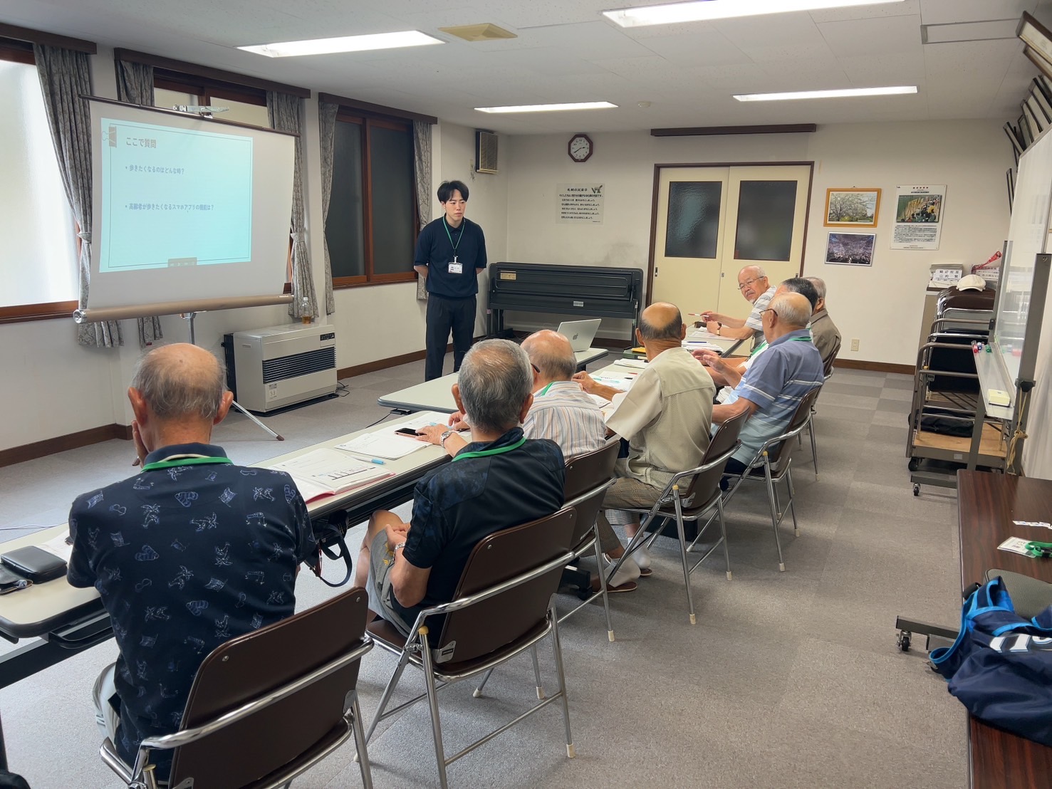 阿部です。8月25日、「健康管理スマホアプリの今」というテーマで情報提供を担当しました。スマートフォンを使いこなす世代といえば若者を思い浮かべがちですが、近年は高齢者の間でも急速に普及しています。ただし「電話・LINE・カメラ」などの基本機能は活用されていても、「健康管理アプリ」となると、まだ十分には使われていないのが現状です。今回は、そんな現代の便利アイテムであるスマホやアプリについてお話ししました。