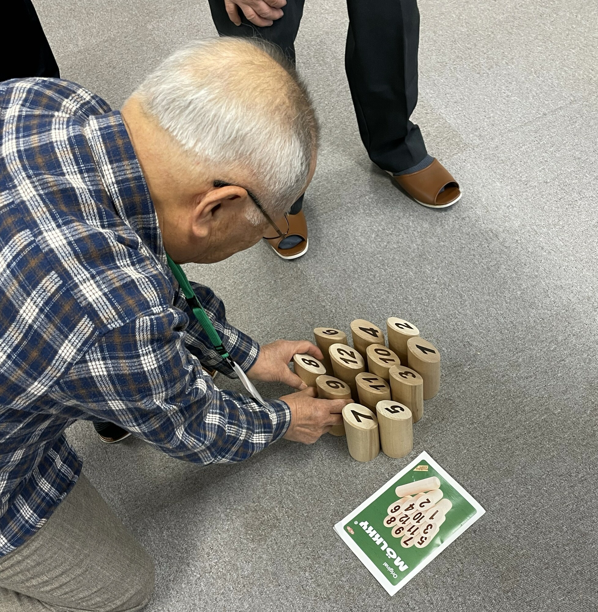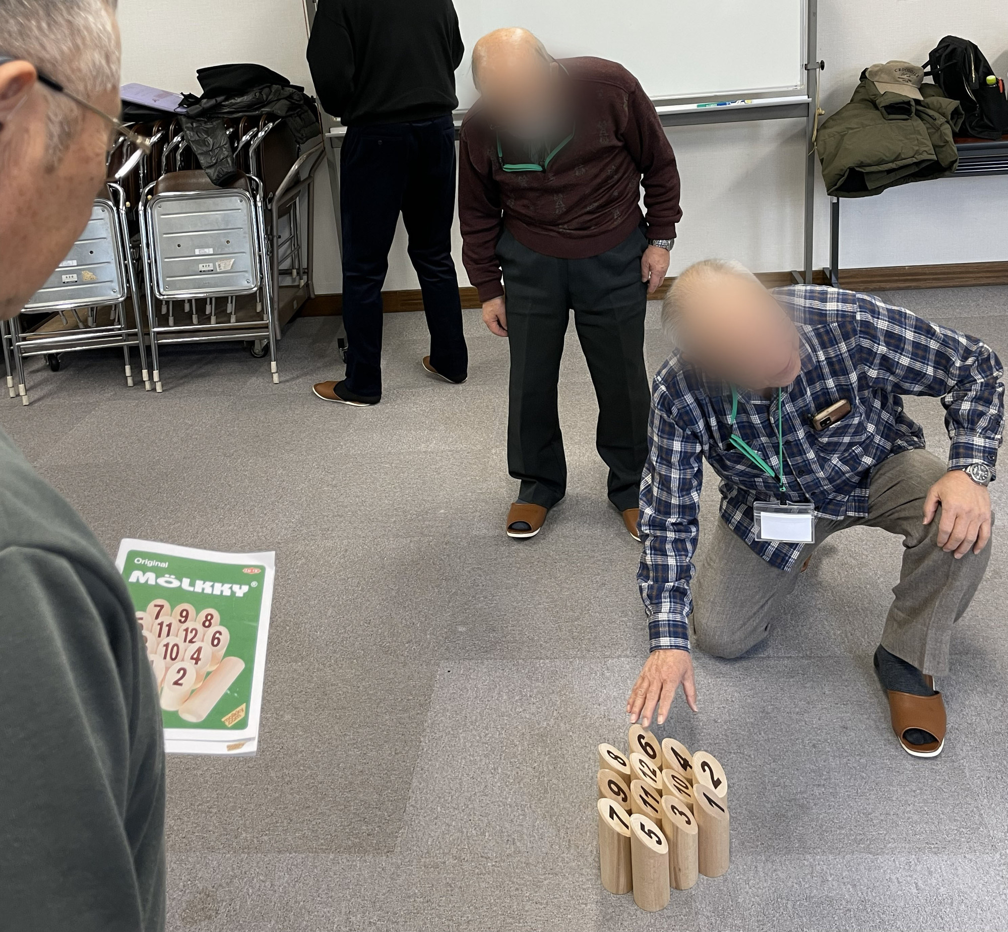 宙を舞うモルックが見えるでしょうか。男プロはいつだって真剣勝負。